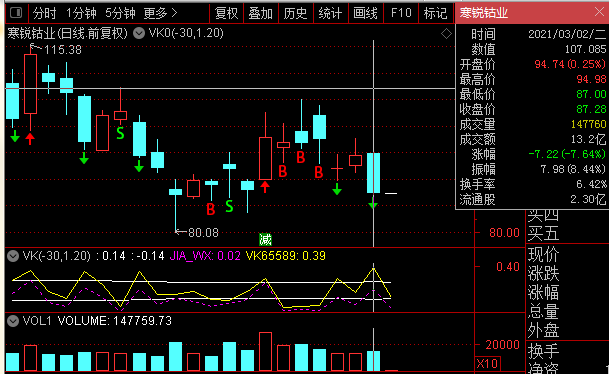 寒锐钴业昨日VK值0.39,放量,下跌通道要正式打开了吧
