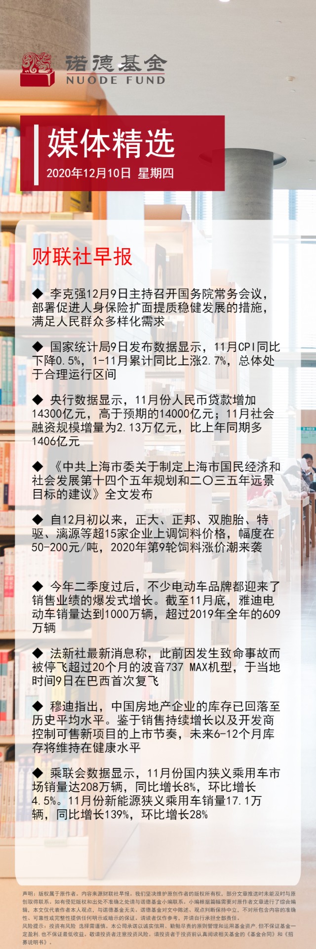 诺德基金媒体精选:一图掌握市场要闻(2020.12.10)