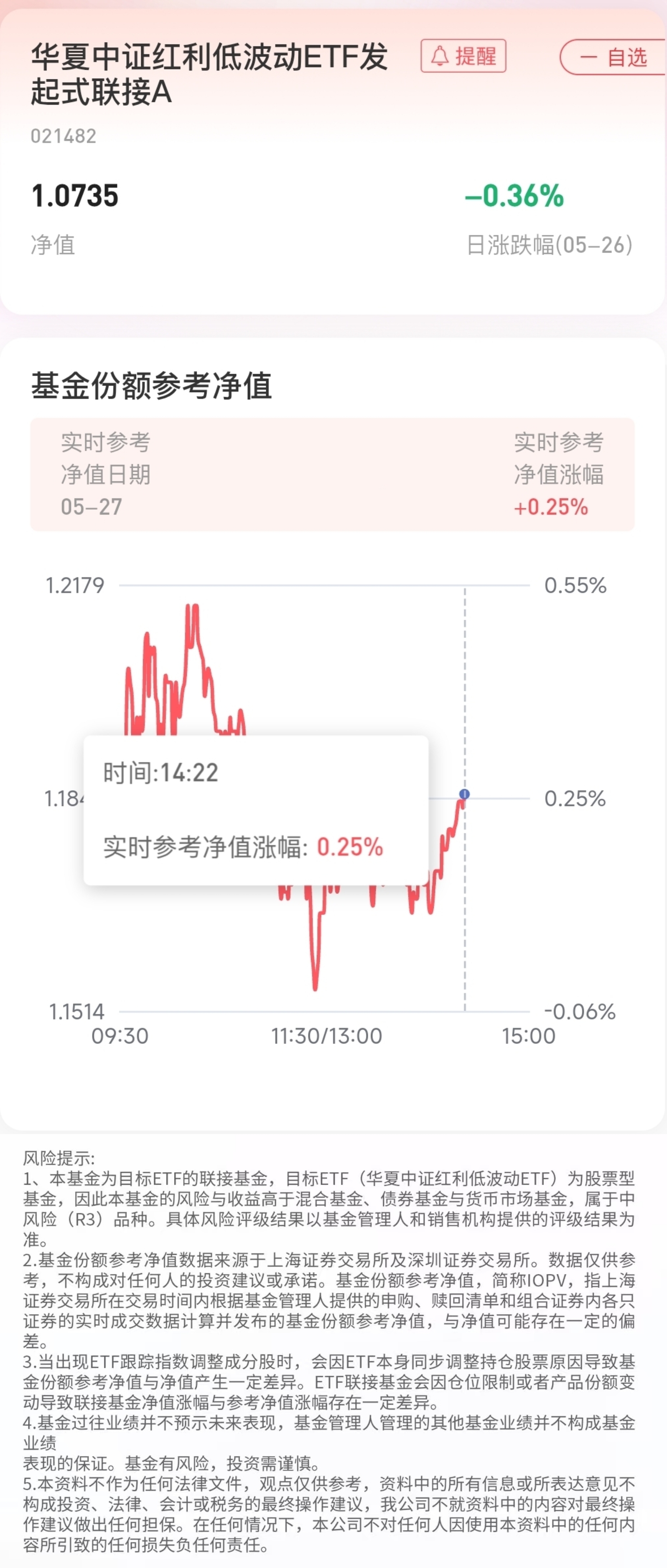 截止至2025年5月27日14:22,本基金跟踪目标基金的实时参考净值涨幅为+0.25%