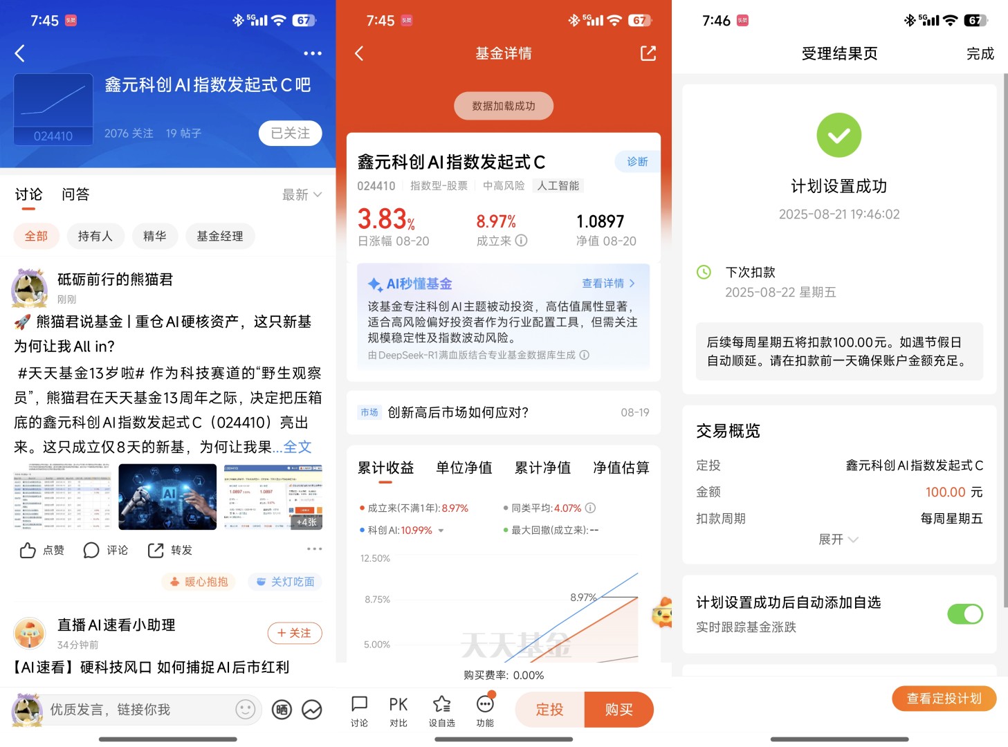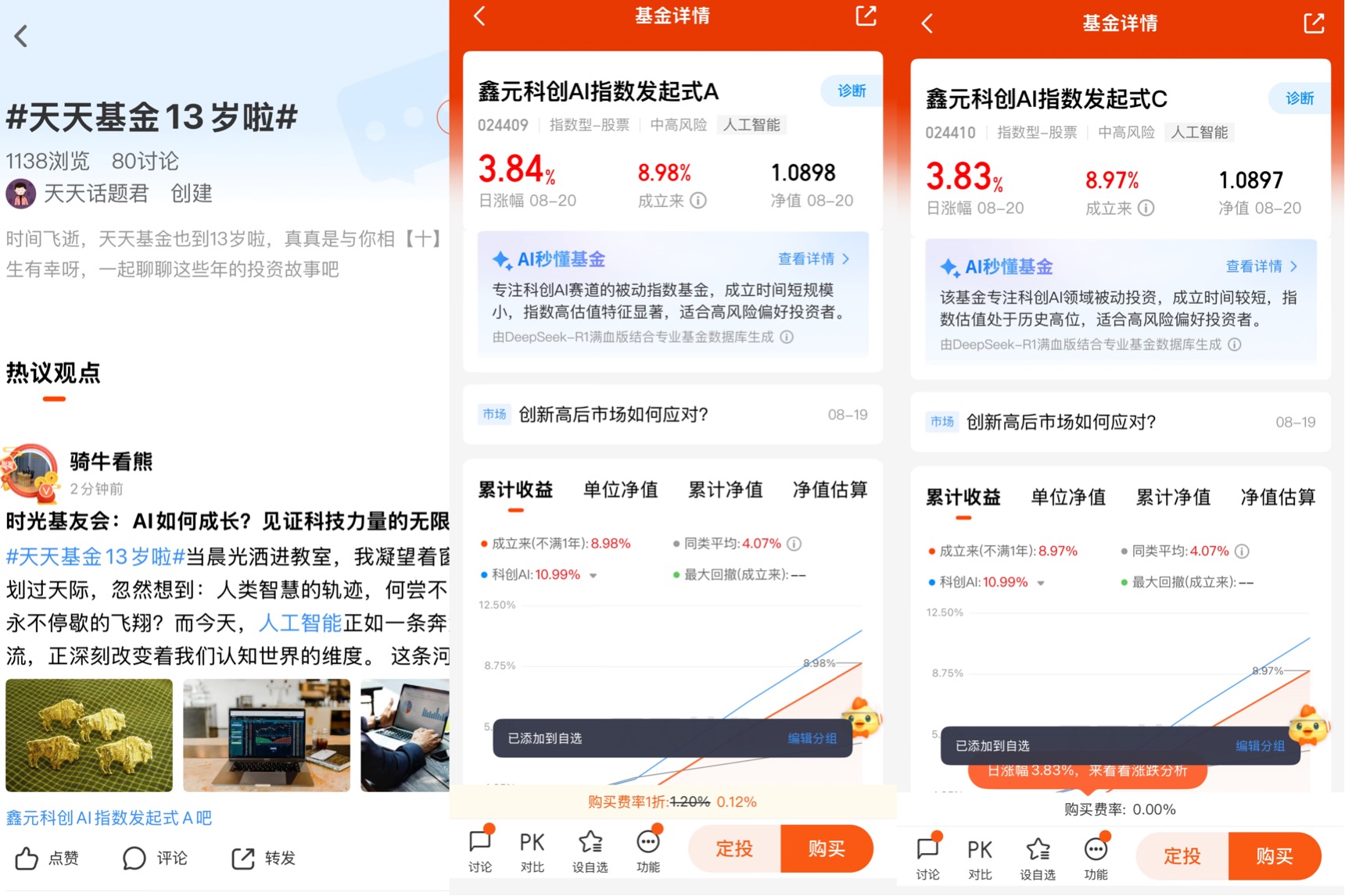 1. 将$鑫元科创AI指数发起式C(OTCFUND|024410)$加自选;