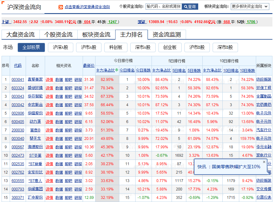 你们看看我们手中的股票排名吧