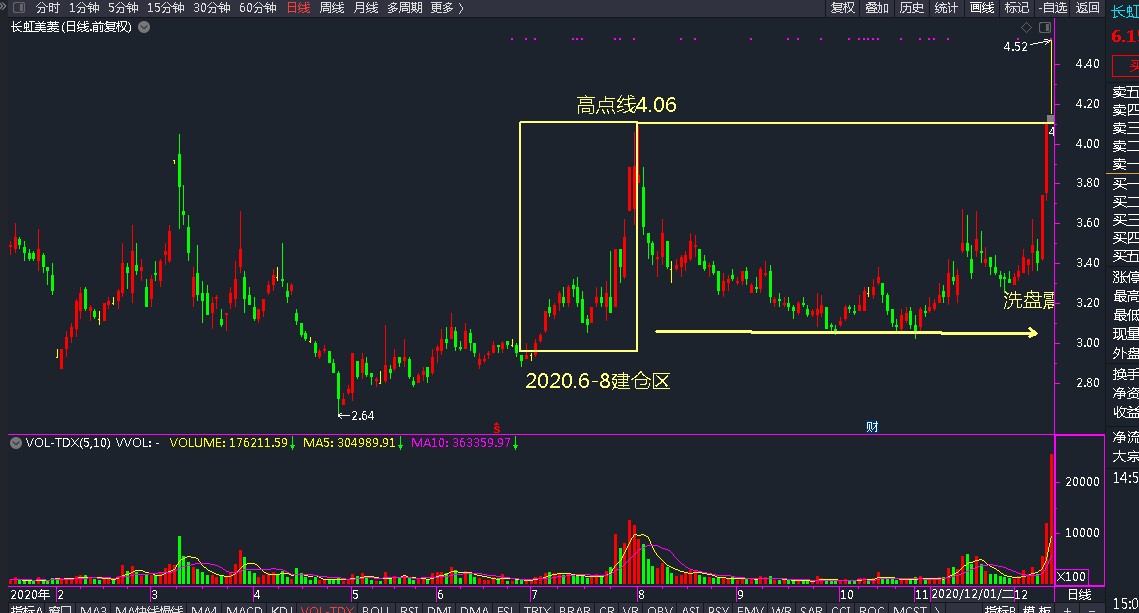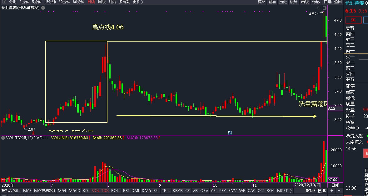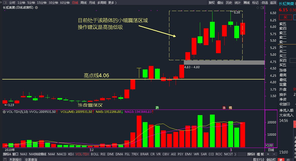 大家关注的长虹美菱仍在小箱体中整理 密切关注量能加大 2021.1.6趋势结