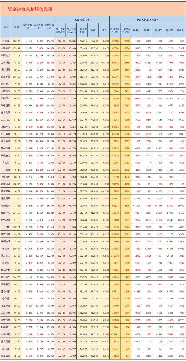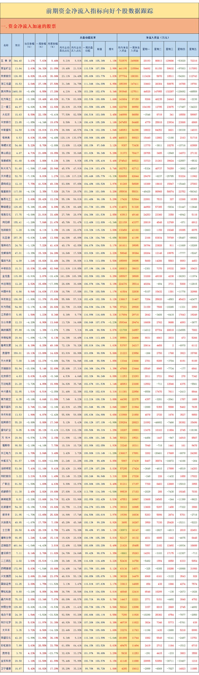 前期资金净流入指标向好个股数据跟踪(2021.02.19)