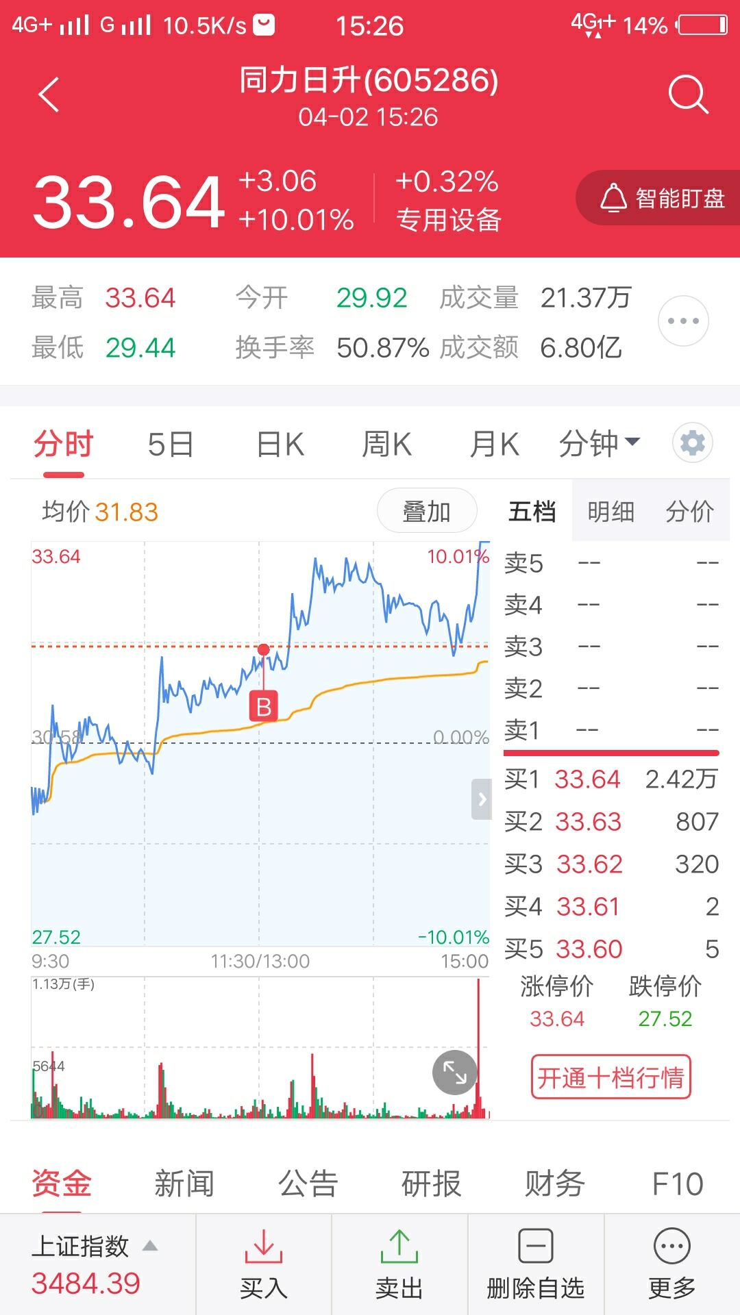 中午直接买进,因为看了通力电梯涨了20个点,果断买入