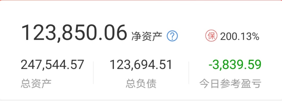 《每日一帖,向着50万目标》净资产123850 当日盈亏-3839 累计提50K