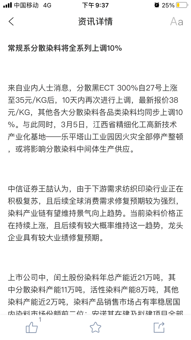 10天分散染料价格上涨两次。